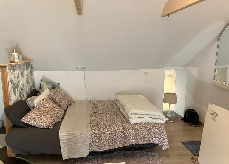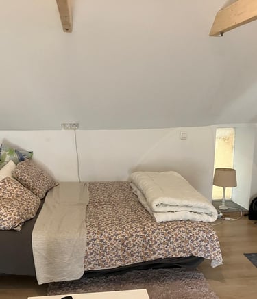 Je vous accueille dans une chambre confortable et intime, pensée comme un refuge paisible et chaleureux. Idéale pour une escapade en solo ou en duo, elle invite au repos et à la déconnexion dans un cadre authentique.